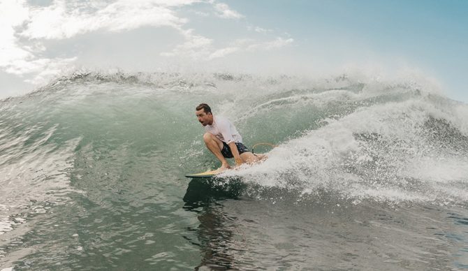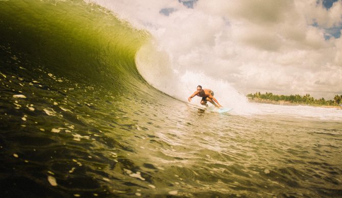 After one particularly rad wave, I watched Frenchy take off on an absolute bomb with the entire lineup cheering for him. He was out the back when he saw it and quickly turned, paddled, and kept his head down as he put his heart into each stroke. Everyone else was on the inside shouting “GO! GO! GO! GO!” The wave doubled up as he was midway up the face. He realized he was in and fully sent it with his last few paddles. He popped to his feet just as it came to a crest and was staring down the face of an Indonesian beauty. It wasn’t an air-drop but it was damn close, gliding down to the bottom of what was nearly a 12-foot face. He then bottom turned like a boss and set himself up in front of a heaving barrel. I lost sight of him as I went over the shoulder, but not before I saw him tuck into pit. Wave of the day.