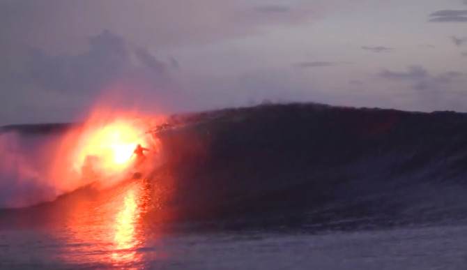 The Fourth of July in the U.S. is synonymous with certain sights and smells: barbecue, hot dogs, hamburgers, flags, parades, and, most importantly, FIREWORKS. In spirit of the holiday, here is a video from a while back of Bruce Irons literally flaring in Indonesia. For added effect, watch the video along with Jimi Hendrix playing Star Spangled Banner.