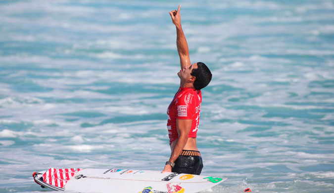 Did that really just happen? Just before Mick Fanning all but wrapped his grasping hands around the world title, Adriano de Souza miraculously found a barrel at Backdoor in the dying seconds of his Quarter Final heat, earning a score to defeat Josh Kerr to keep his world title hopes alive. Could this be Adriano’s year? Could the world title come down to the finals? Only time will tell.