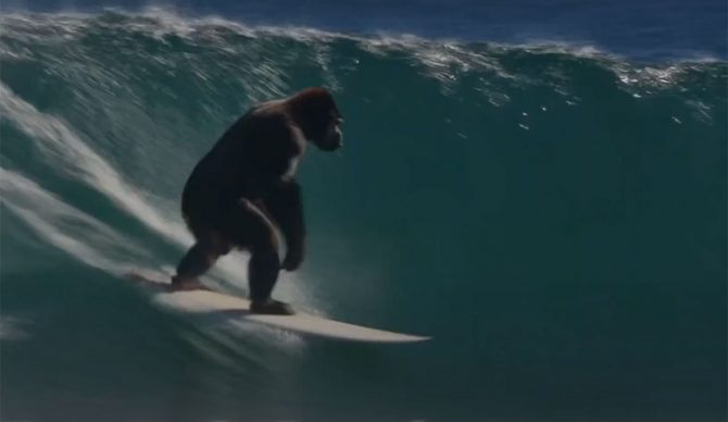 Yes, it’s obviously not real. But it’s obviously not real not because it looks fake, but because a gorilla cannot do what this gorilla is doing. Turkeys, maybe, but hell, most surfers can’t do what it’s doing, but that’s beside the point.