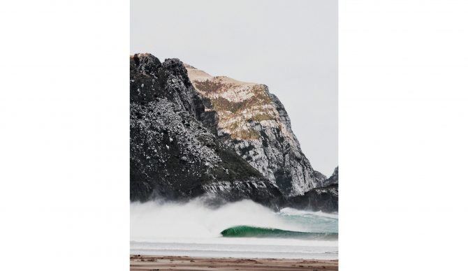 “South swells hit hundred-meter cliffs with full force,” Rey told us, setting the scene for a reeling offshore left with the kind of backdrop that absolutely belongs in a movie. “Waves are refracted toward the perfectly groomed sandbanks and lifted up by the strong offshores. This is a place of magic. It is cold but the native bush behind the beach offers a tropical feeling. ‘Sweet as,’ as the locals would say.”