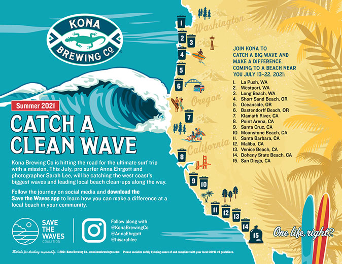 The surf trip is backed by Save the Waves and Kona Brewing, the latter of which committed $50,000 to the former’s efforts to keep the beaches clean.