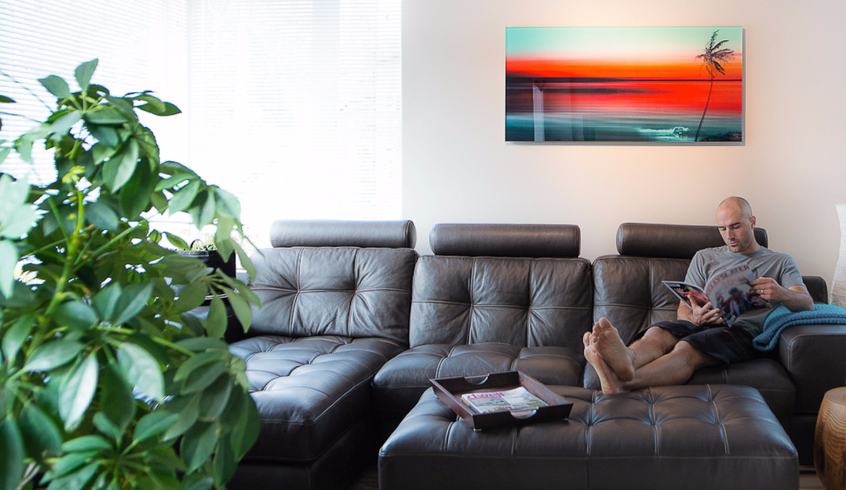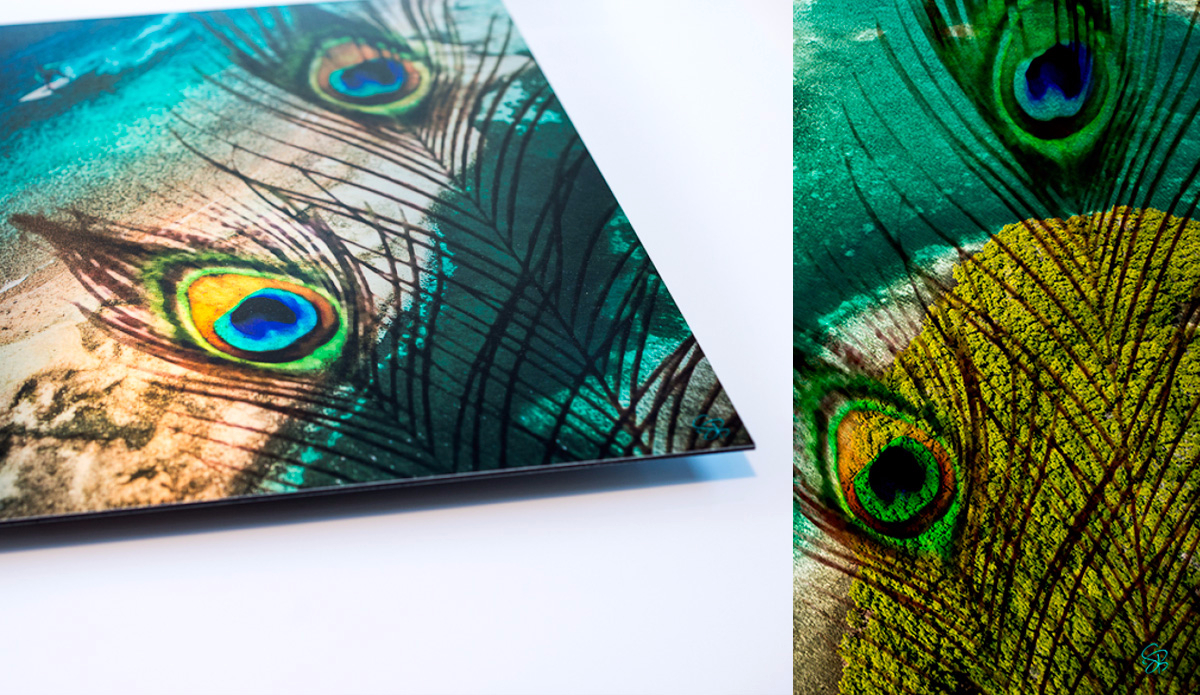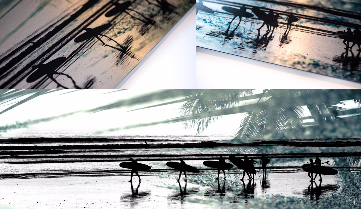To add to the depth and uniqueness of the imagery, the artwork is printed on unconventional materials like aluminum, acrylic glass, wood, and the occasional surfboard.