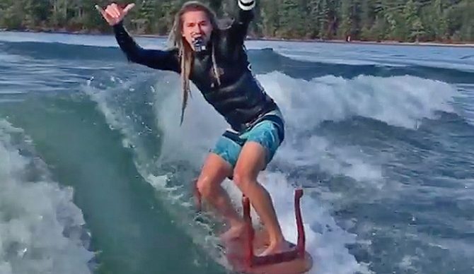 Austin Keen can surf anything. That’s a fact. So when he recently snagged a table from Goodwill for nine bucks, the next logical step was obviously to flip the thing upside down and wake surf it. The stunt quickly turned into something much cooler, though.