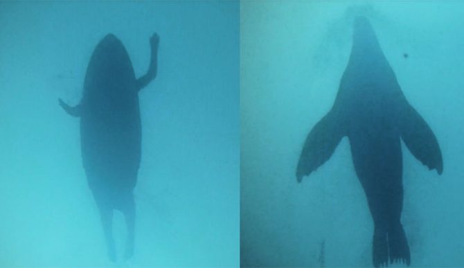 ‘Shark’s-eye view’ of a paddling surfer and seal. New research suggests white sharks may struggle to differentiate the two. Photo: Laura Ryan