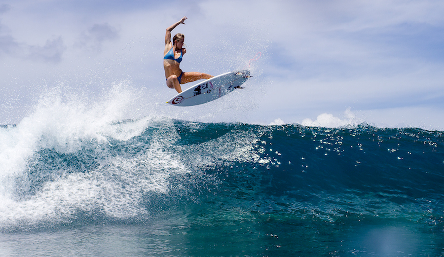 At a really young age, as you see from some of the archival footage, she was really a confident, dominant surfer. You see her winning the Rell Sunn contest and there’s footage of her standing next to Coco Ho, Alana [Blanchard], and Carissa [Moore], and she’s like twice the size of these girls. She just had this presence and confidence. Of course, she loses her arm to the shark, which is an important crossroads for her. But, she quickly realizes that who she is and what she’s all about is surfing and being an athlete. Nothing has changed.