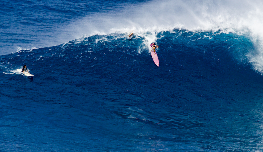 “After Bethany had Tobias, she went straight back to her goals like competing on the Championship Tour with wildcards and surfing Jaws.” Photo: Aaron Lieber