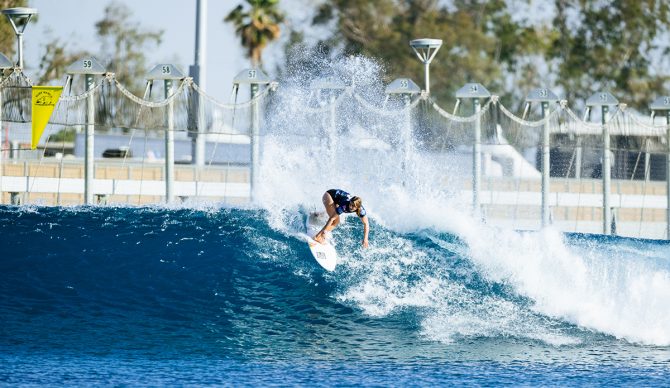 Caroline also moved up to fourth in the rankings, into that coveted Final Five positioning. Her year has certainly been a comeback of sorts: she’s now finished second at the Ranch and Sunset, to go with a third at Margaret River. Simmers, who as mentioned, also had a strong event, actually looked as comfortable as any surfer on the mechanical wave. She moved into fifth with her semi-final finish.