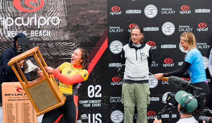Carissa Moore knows Bells Beach. She’s got the place dialed–even on days when everything’s a little funky, she’s got the know-how to pick off the best waves. And it certainly showed when she won the Rip Curl Women’s Pro Bells Beach final against Stephanie Gilmore.
