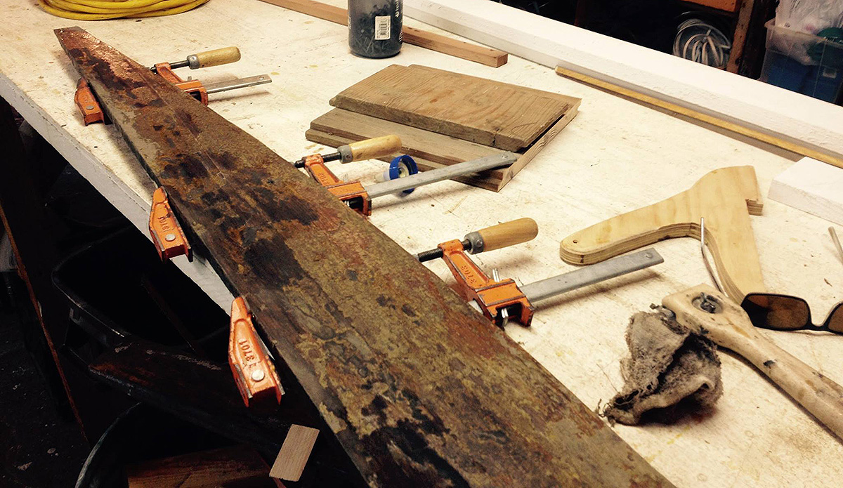 Bill Wilson, the maintenance manager of the camp, kindly gave me free reign in his perfectly equipped workshop and suggested I “harvest” the material for the project from discarded camp sailboats. The boats were handmade in the 1950s by then maintenance manager, Arnold. After toiling a few planks off the old boats with a claw hammer, crowbar and some cursing, I found that the wood was as clean and good as ever, even after over 70 years of weathering in the North Woods.