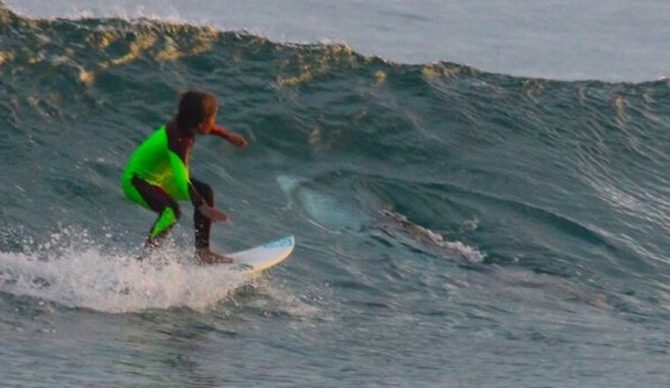 In a photo that’s been making rounds on the internet of late, 10-year-old surfer Eden Hasson can be seen bottom turning as, what appears to be a Great White, dips underwater on the shoulder.