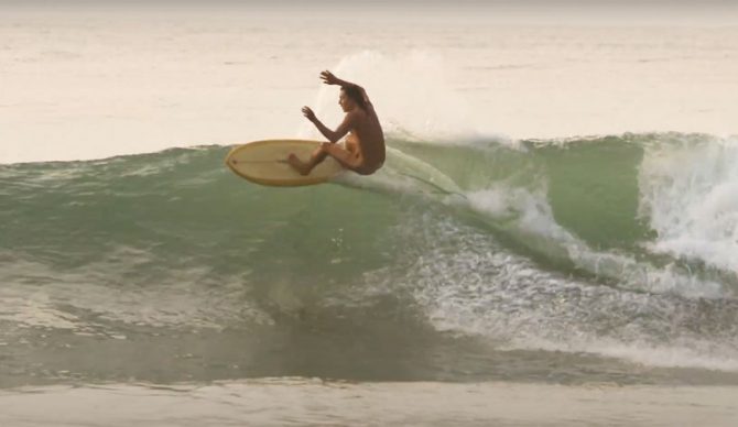 Derrick Disney on his self-shaped twinzer is a look at really, really good surfing. Photo: YouTube//Screenshot