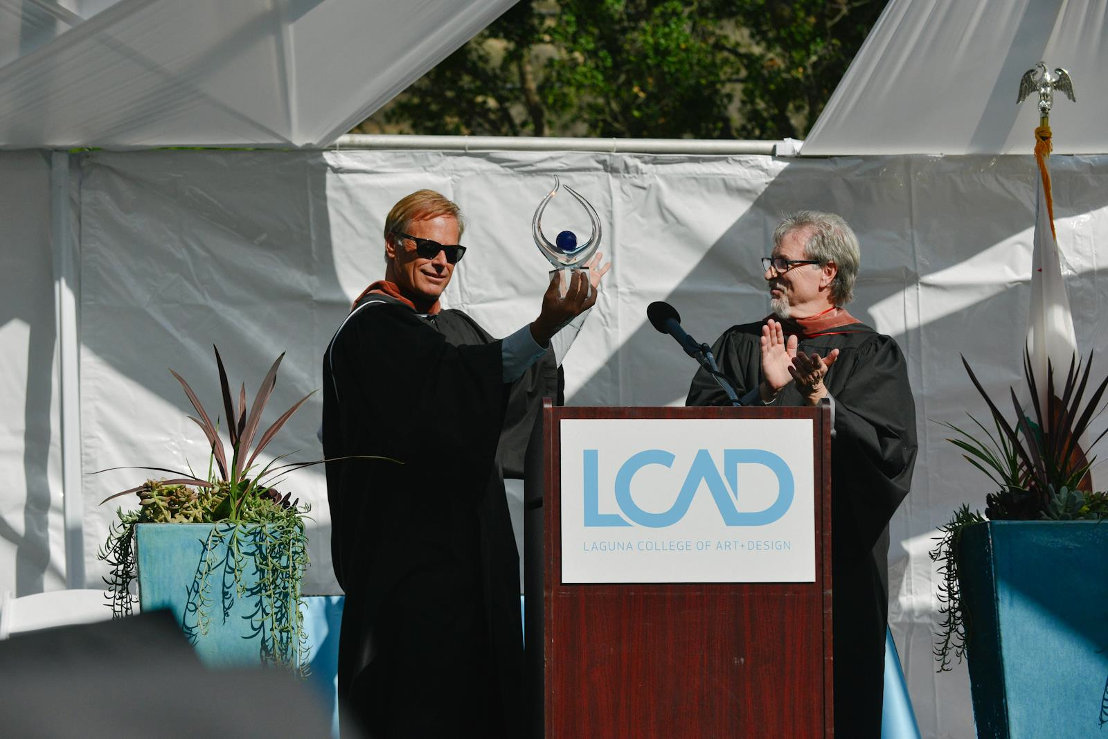LCAD President, Jonathan Burke praised Hurley’s support of LCAD’s Action Sports Design + Digital Media degree program, the first of its kind in the world. Hurley thanked the LCAD family and gave credit to the creative young graduates. “Passion and curiosity. Adults forget these things,” he said. “But without them, things can’t be invented or sold.”