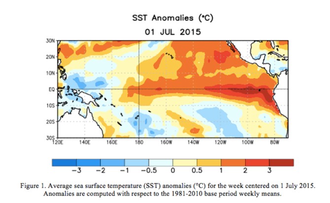 The National Oceanic and Atmospheric Administration (NOAA) declared in April that El Niño is officially here for 2015… though Eduardo could have told us that back in December, because he was seeing more lobsters and fewer big fish. Back in 1997, he also knew the fishery was different and the water was warmer, and, it seemed to him, a permanent change occurred as the result of that difference.
