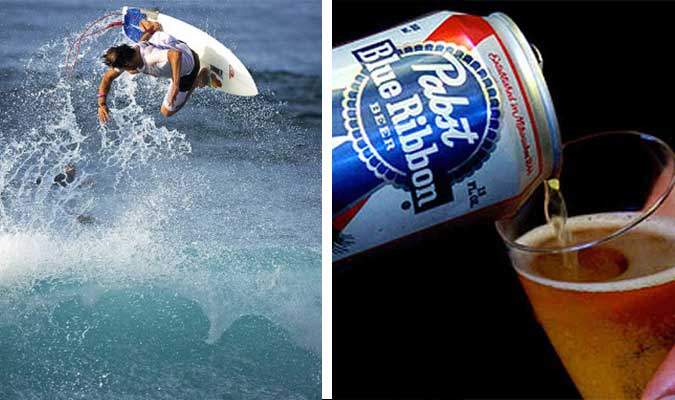 Remember when you were in high school and the only requirement you had for beer was that it was cheap and came in cases of 30? PBR is the kind of beer you reach for when it’s time to get hammered, just like Marine Layer is the site you go to when you’re trying to get fired up. From beer pong and beer bongs to shot-gunning and keg standing, PBR is a don’t care, throw caution to the wind kind of beer, and Dane’s surfing is all about going for broke.