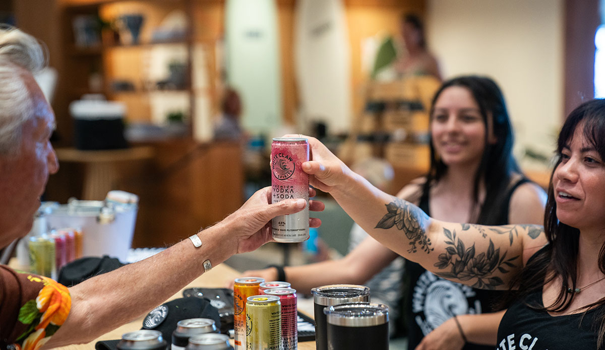 Our featured change-makers included surfer/scientist/environmentalist Cliff Kapono, two-time Olympic champion snowboarder Jamie Anderson, Lucy Osinski and Elliete Singleton from GRLSWIRL, as well as Laguna Beach local and three-time skimboarding world champion Blair Conklin, and Chad Nelsen, Surfrider’s longtime CEO. The whole night was well lubricated by our partners, White Claw, Athletic Brewing, Kona Big Wave, and Macchu Picchu Energy. Bellies were filled by Rasta Tacos.