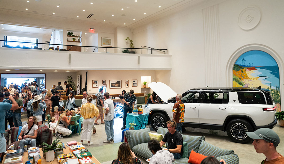 As mentioned, The Inertia partnered with Rivian, which hosted at its South Coast Theater, a historic venue that sits across from the glittering Pacific Ocean. Rivian restored the beautiful building into a gorgeous space that was perfect to host a gathering of amazing people. The line burst out the door as nearly 400 people waited on the sidewalks along Laguna’s historic Pacific Coast Highway.