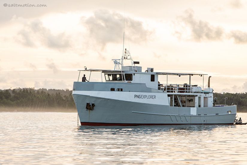 Andrew Rigby, captain of the PNG Explorer and his best mate and surf guide, Darty, are offering surfers the chance to join their next exploratory mission somewhere in the South Pacific. Successfully operating the only surf charter vessel in Papua New Guinea, these lads have been coming across new waves for seven years. “We’ve explored every outer island chain in PNG that faces the trade swells…and found dozens of amazing waves,” Andrew says, standing at the helm as he plots a course to the current home port, Kavieng.