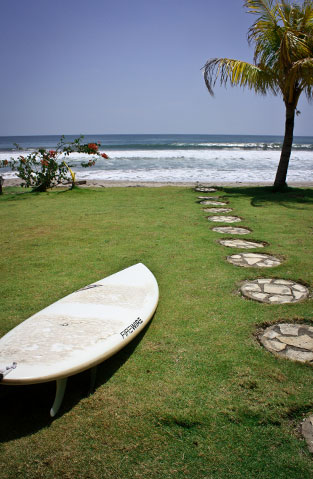 After an airline screw up, I arrived by myself in Managua a day late. My surfboard had arrived unscathed from the notoriously cruel hands of the airline workers, and because of the screw up and one winking employee at the check-desk, it arrived for free. Things were looking up again. Now I’m sitting in a beautiful, fan-cooled cool tile house on a dirt road just outside San Juan del Sur, covered in mosquito bites, sweat, and sunburn, battling a hangover with a finger of Flor de Cana in my coffee. I can hear monkeys yelling at each other in the trees, and a mangy dog is lying in the morning sun a few yards away. I’m about fifteen minutes from Madera, and the forecast is looking amazing, and I have a brand new surfboard. Things are not just looking up; they are up.