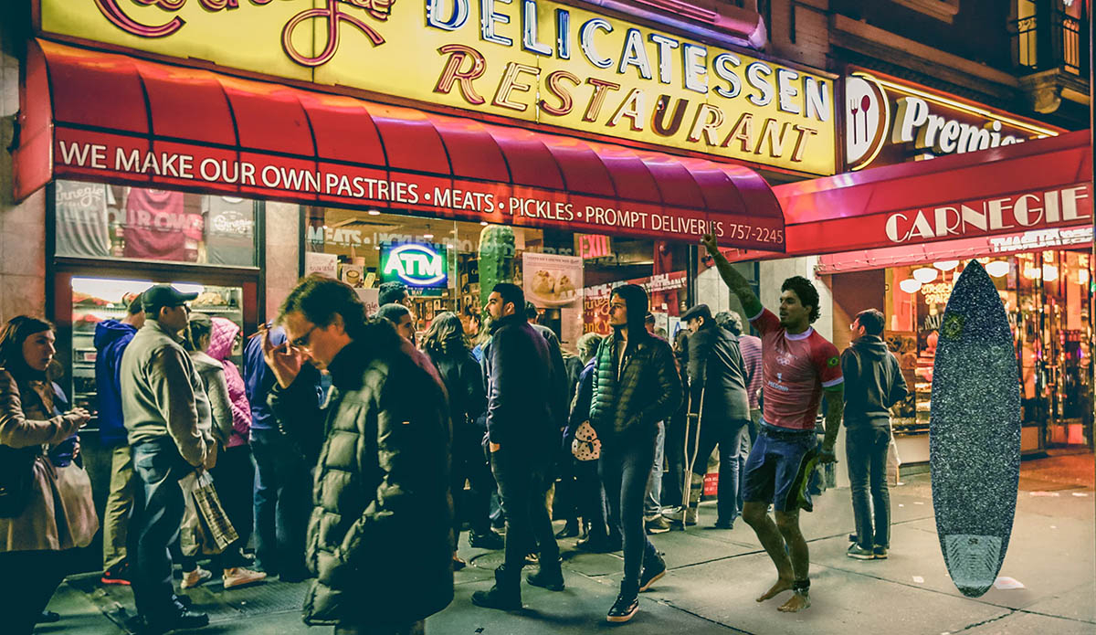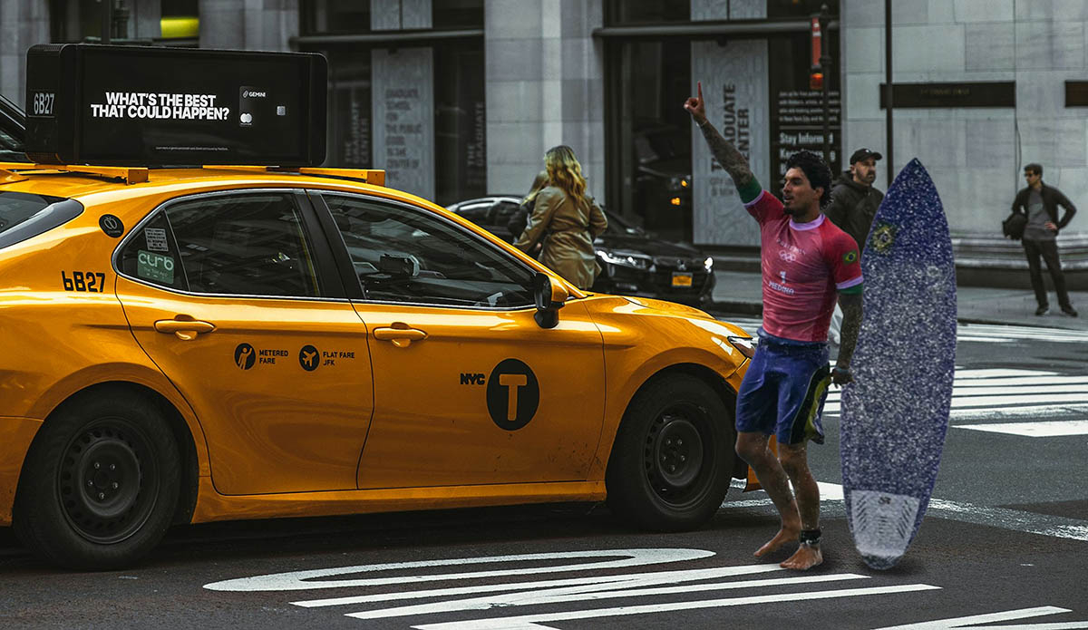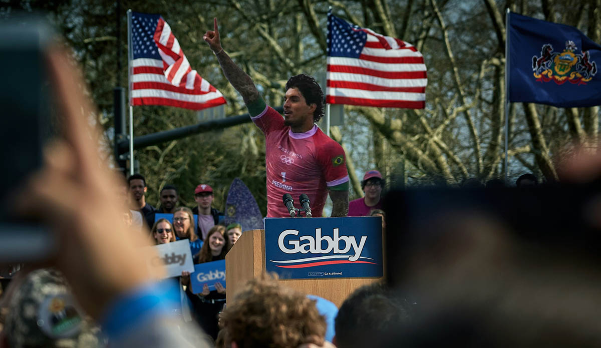 But as a staff, we thought this particular Gabby claim was so pure, so clean, that it could easily fit into other everyday moments. From the deli to the street corner to the disco. We’re here for it. So enjoy six images of Gabby claiming in everyday situations. Because as surf fans, we all deserve to see that.