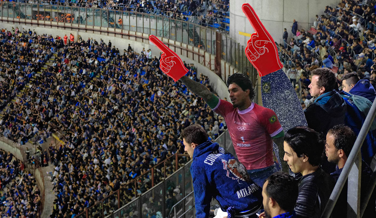 What’s the difference? So many celebrations in sports are contrived, choreographed moments that punctuate something exciting or great…just because they’re supposed to. They don’t add to the drama of the game. They steal from the moment. But yesterday, in a way only Gabriel Medina could, he created an iconic image by saluting everybody in the channel.