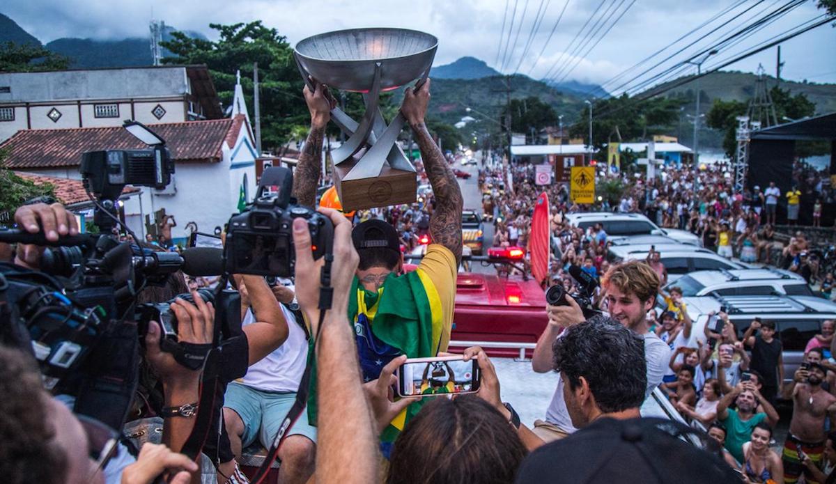 “Thank you, everyone, for coming out, for cheering me on…I’m really at a loss for words, but it feels incredible to be welcomed home like this,” he said. “I’m just a kid from Maresias that had big dreams. I’ve worked really hard to achieve my goals and I’m grateful to be living my dream. I have so much gratitude and am thankful to all of you and to each message I received. I have so much love for Maresias and it’s an honor to represent the city and Brazil all over the world.”