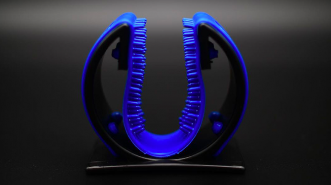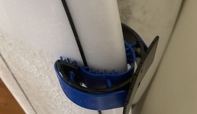 A closeup of the QuiverGrip. A PVC-enforced casing with rubber grips that secure any board.