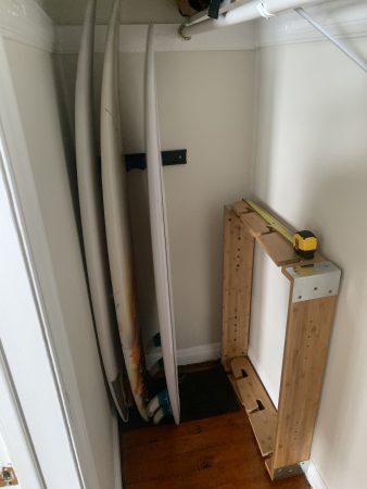 Point is, I don’t like leaving my boards lying around on the ground or piled up in a corner against a wall, which is typically begging to ding boards over time. And if you don’t own a garage (like me), surfboards can also easily add to a cluttered feeling at home. I’m enough of a neat freak that all of these factors, like I said, make me a big advocate for board racks.