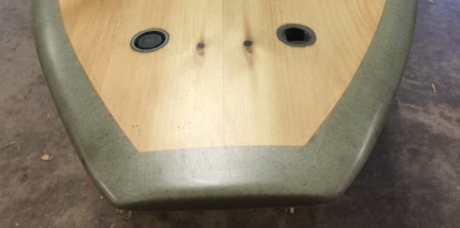 This is where the new GreenRail construction comes in. The rail, Mike tells me, is the most labor-intensive part of their traditional board-building process. Whereas they utilize cedar planks for the body of the board, the rails are built of many precision-milled lengths of wood designed to fit together to build up the shape of the rail. The recycled material used for the GreenRail construction is a thermoplastic, allowing Mike and his crew to form a rail much faster than their traditional process. It also cuts the overall board production time almost in half. According to LaVecchia, it performs and lasts just as well as their original construction, and Mike was excited to tell me how this allows them to take 100% recycled, single-use plastic and sequester it into a permanent and useful home rather than the bottom of the landfill or in the ocean. On top of that, all offcuts and waste produced are fully recycled, contributing to a circular economy.