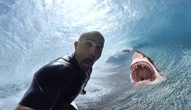Great White Spooks Kelly Slater in the Lower Trestles Lineup