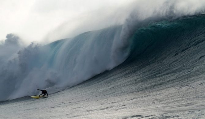 On big days you can look around the lineup and easily gauge the level of fear rushing through a surfer’s veins. Look into someone’s eyes, observe their body language, and in an instant, you can tell if they are ready and willing to take off on a giant wave or if they are out there playing games. But this individual’s nonchalant demeanor left me wondering. He was either oblivious to what he was getting into or the exact opposite.