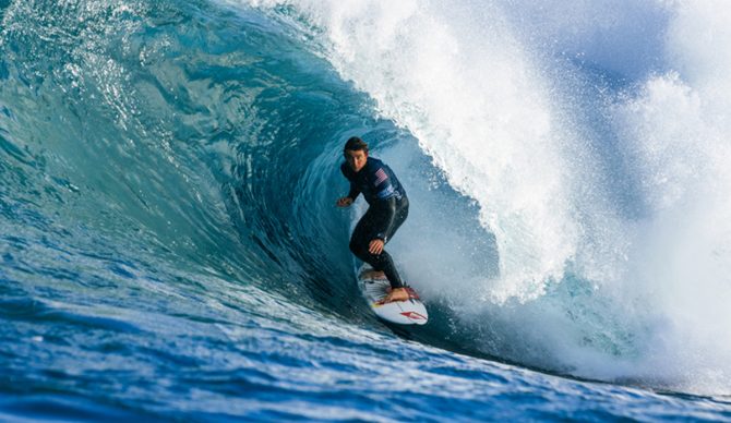 When the moment went down, Griffin was already well ahead. A 7.00 ride right out the gate, bolstered by a 5.83, dwarfed McDonagh’s 1.93 total. However, the wave that came in with just over eight minutes to go certainly slammed the door shut behind him – an air drop into a preposterously deep barrel that seemed all but impossible to emerge from…until he did, arm held aloft.