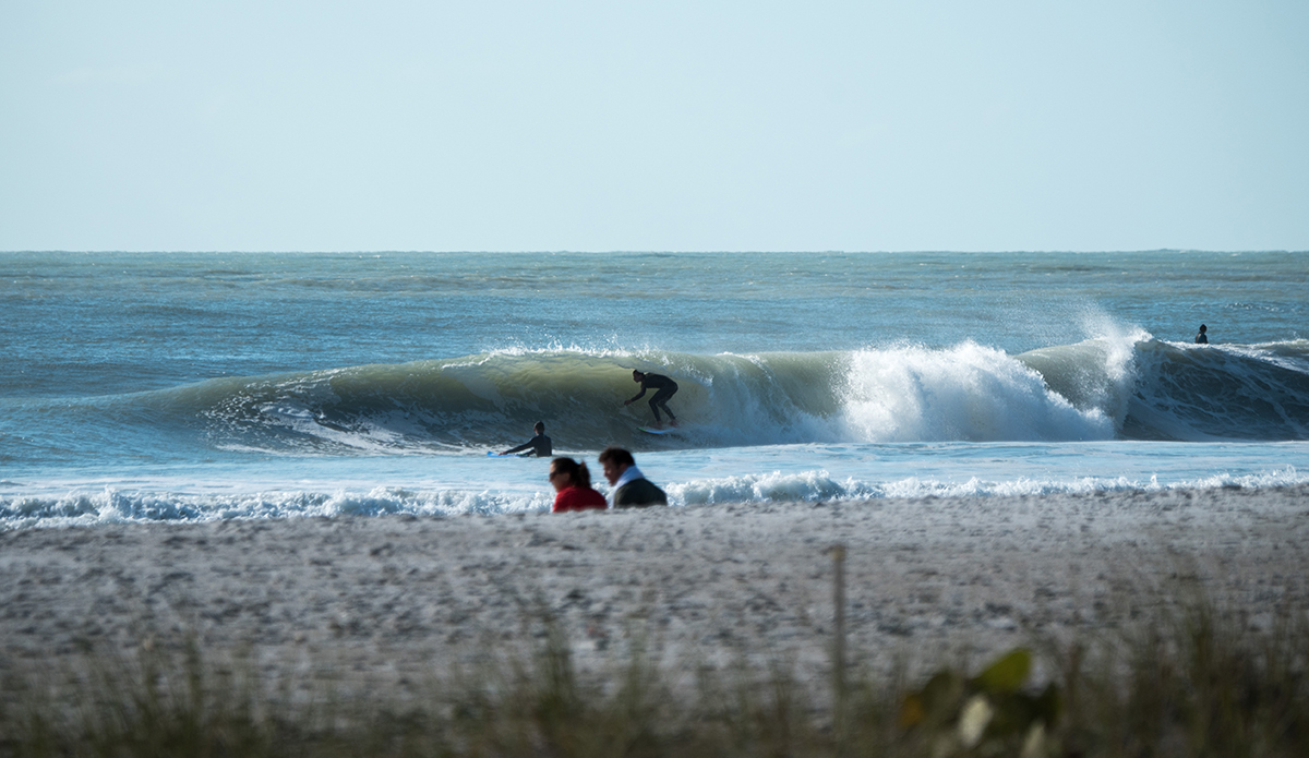 Florida’s coastline is full of surprises if you know when and where to look. Whether you go east or west, you will come across a beautiful beach and a surfing playground somewhere. This week, surfers got their holiday presents: a day of hollow, racing peaks in the Gulf. It was my first photo adventure road trip through here. I came with no expectations beyond having read the “4-7’/Fair to Good” forecast prediction. And sure enough, it was on.