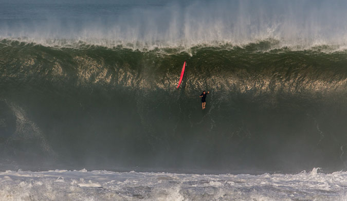 When we woke up in the morning, we could hear the ocean long before we saw it. It was loud. The ocean was angry. Very, very angry. It was easily the largest waves I had ever seen, and Tom, like many guys out there were doing, was pushing the limits of what was humanly possible by simply being out there. Here is Tom falling from the sky on an absolute bomb. Despite this horrific wipeout, he walked away rattled, but alive.