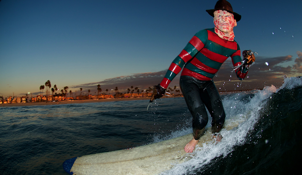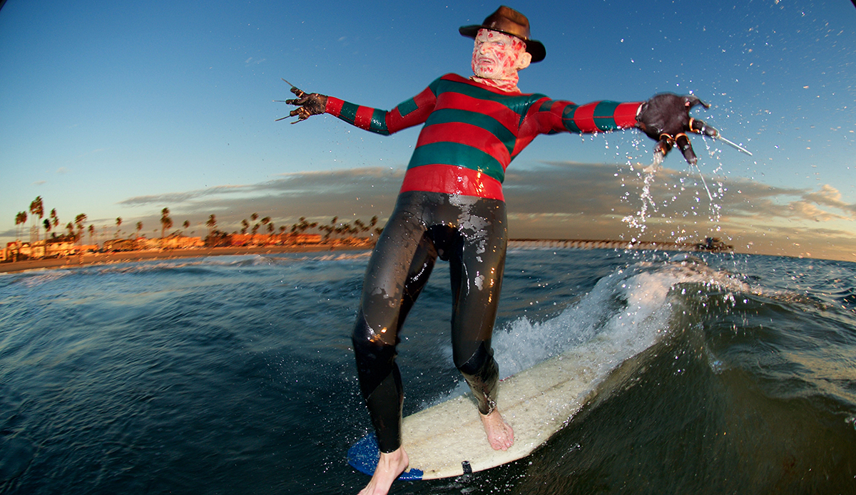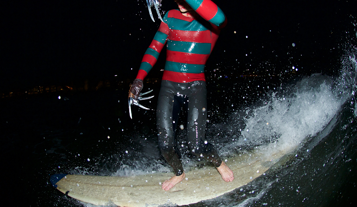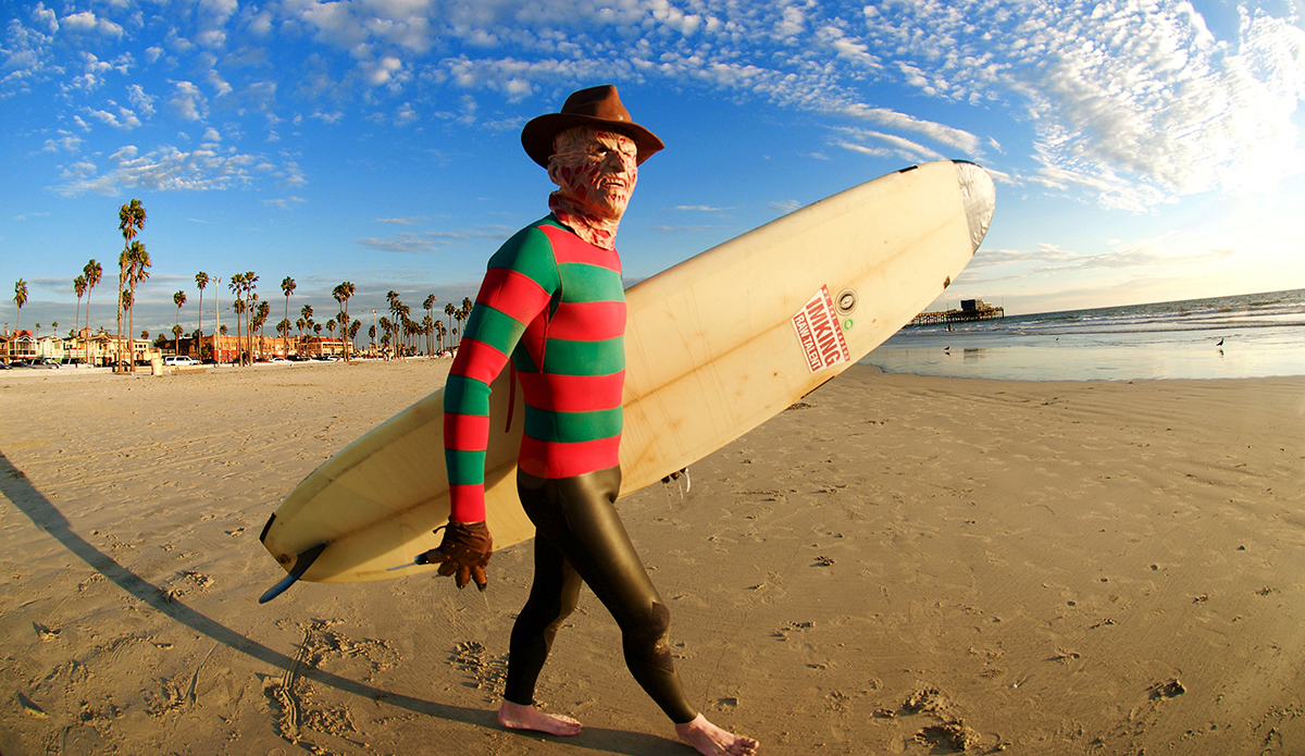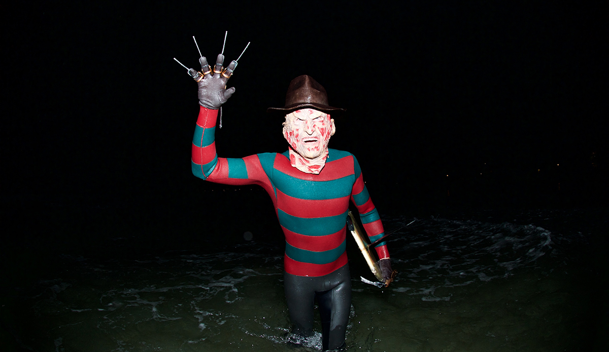The man has made a Clone Commander Gree wetsuit from Star Wars, he was a nose-walking leprechaun on St. Patty’s Day, Buddy the Elf for Christmas, and a floating American flag on the 4th of July. He’s also the guy who makes wetsuits for world-famous fashion designer Thom Brown that run for $3,900. He has a unique talent, to say the least. So every October, the self-taught tailor takes on the challenge of making a new wetsuit/costume so he can show off the skills that earn him that “neoprene magician” moniker.