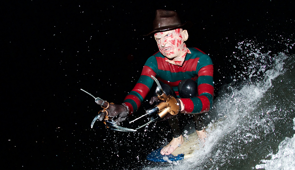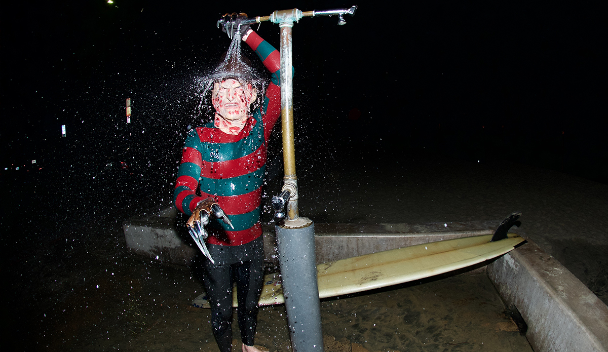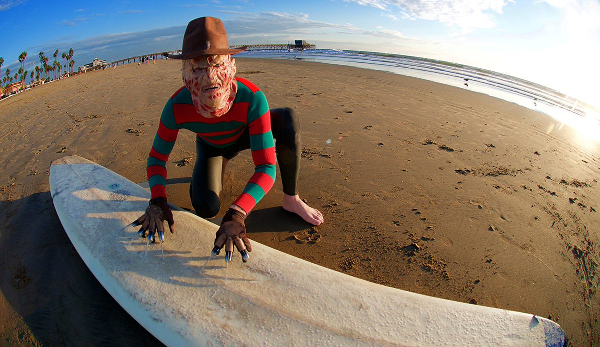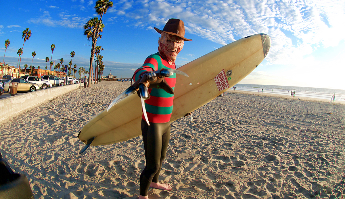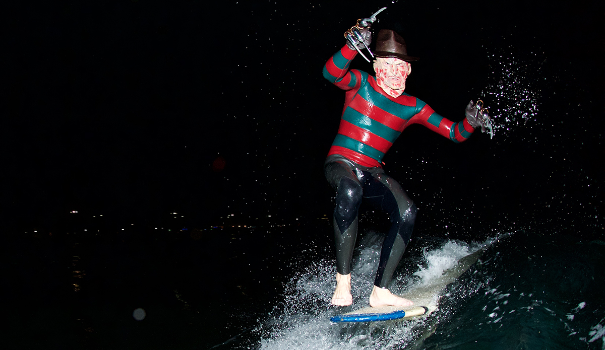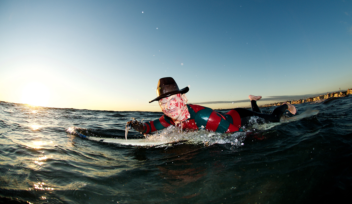 The man has made a Clone Commander Gree wetsuit from Star Wars, he was a nose-walking leprechaun on St. Patty’s Day, Buddy the Elf for Christmas, and a floating American flag on the 4th of July. He’s also the guy who makes wetsuits for world-famous fashion designer Thom Brown that run for $3,900. He has a unique talent, to say the least. So every October, the self-taught tailor takes on the challenge of making a new wetsuit/costume so he can show off the skills that earn him that “neoprene magician” moniker.