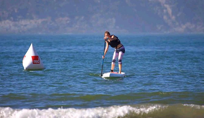 Two years ago, despite my misgivings about my body, I was persuaded to put my bikini on and do something while wearing it. I got on a stand-up paddleboard. I’d never been to back line before in False Bay, Cape Town, and so I was terrified my first time. As the months went by, I got used to the sinus cleanse and managed to catch a few little waves. But I was still scared. In fact, I was so frightened when I paddled out for the first time at Huletts, (a benign little right, next door to Bruce’s Beauties), my legs were visibly shaking. I cried more than once out of fear.
