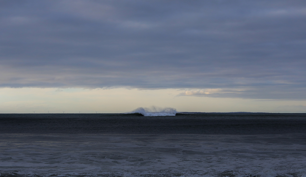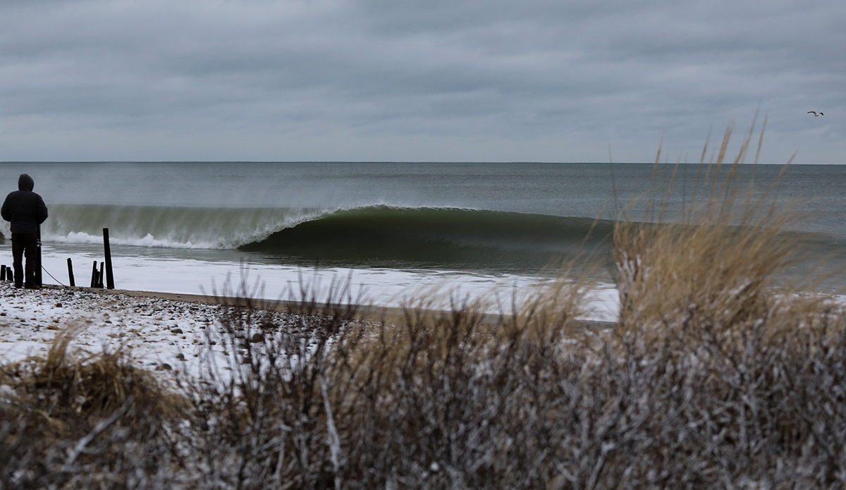 The first day of swell (spent in New England) provided great waves and got pretty large by the end of the day. The second morning started off really good so we checked a mysto spot that normally doesn’t get very big. It was absolutely pumping. Reeling lefts with makeable barrels. There was so much swell in the water some outer slabs/reefs were breaking.