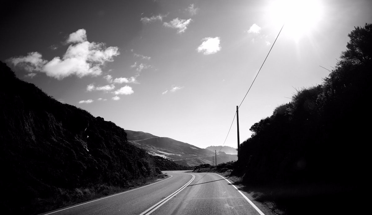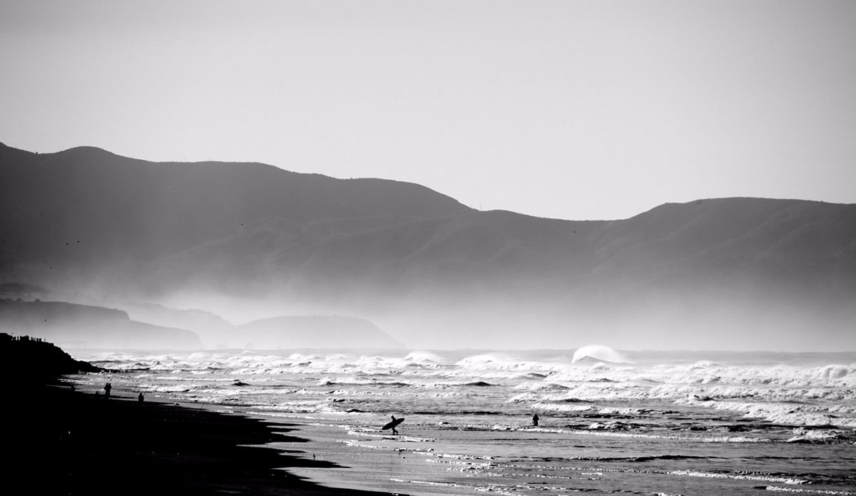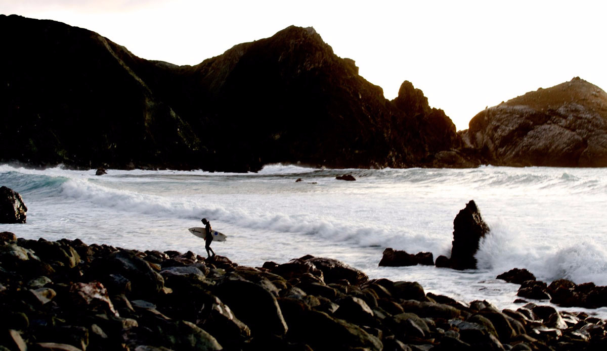 Having grown up in Northern California my association with the ocean has always been closer to redwoods, overcast skies, and cranking the heater after a surf while driving home than the Baywatch style white beaches of Southern California. I loved that. It felt more rugged than most of what I saw in surf magazines. Fast forward to a trip earlier this year, where I found myself asking a buddy to crank the heater in our van so I could get that feeling back in my feet. There was an entire Pacific Ocean between myself and those redwoods back home. We were driving from one side of New Zealand’s North Island to the other after a sunset surf session and I was flipping through my phone showing another (new) friend some images from the winter’s other trips (technically it was still winter back home in California, but summer for the Kiwis). We were gawking at some of the scenery; the landscape images, the sunsets and the lineups that we are all willing to travel thousands of miles to see. Every once in a while we’d stop to take a new photo on the drive back to Auckland, because for anybody who’s been to New Zealand you know you can’t drive more than five minutes without seeing something that looks like it belongs in a travel brochure. Then we scrolled to one amazing sunset shot in my phone. It wasn’t from an exotic beach in Costa Rica. It wasn’t one of those trademark North Shore sunsets. It was actually a random snap from a cliff less than two miles from my own home. A massive cove, waves rolling below, a bright orange sky and purple-blueish ocean in the early evening – California style.