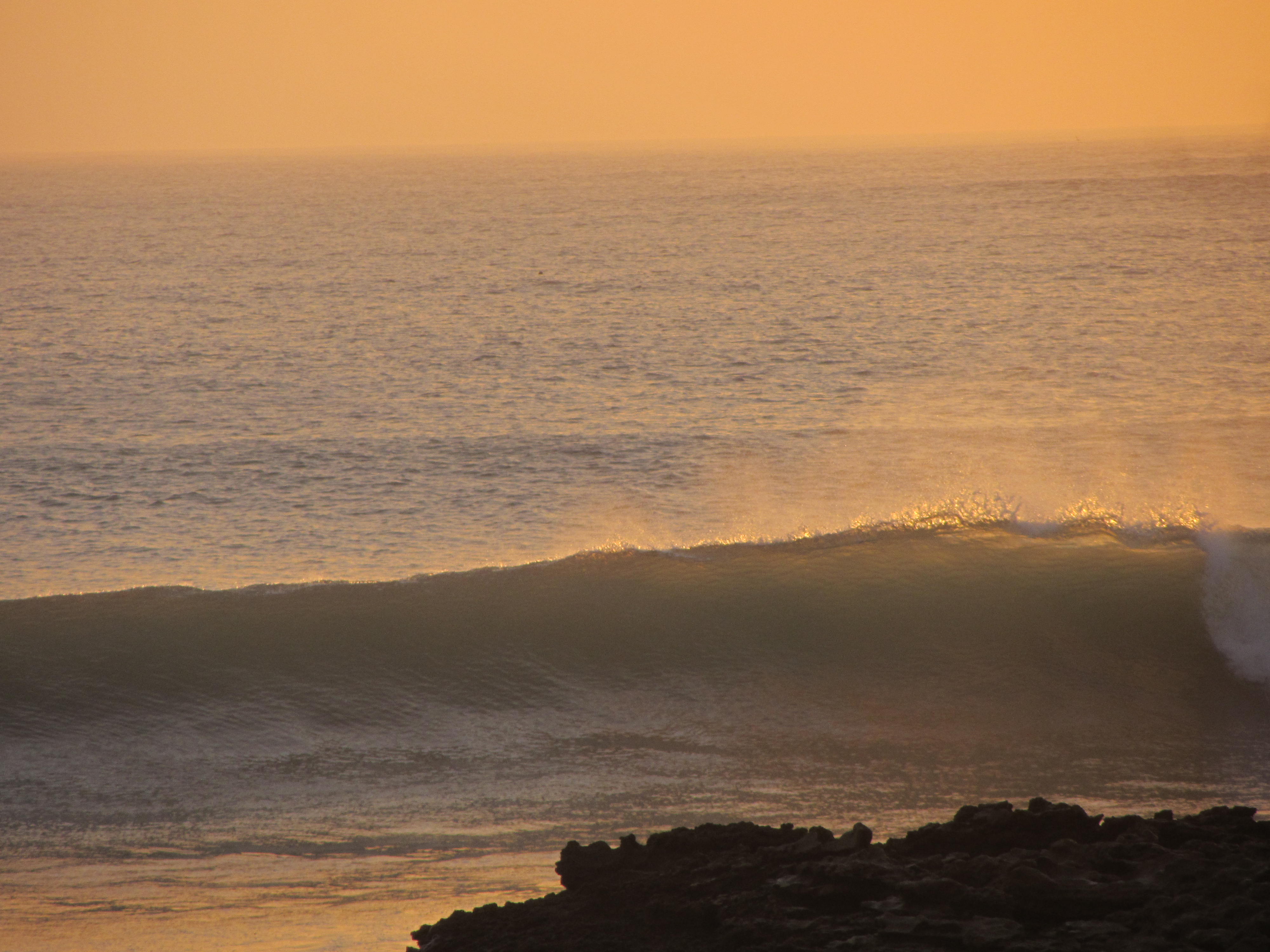 After a 30 hour cross-continental journey, I met Sophie in a small surfing village called Taghazout in Morocco. I stared out the window on the runway waiting to take off on the final flight of the trip. The crescent-shaped moon hung so low in the sky and glowed such an intense yellow it looked fake, like it was from a movie set. I arrived in Agadir around midnight, and as the young taxi driver sped down the middle of the road he told me the names of surf spots, and pointed to a mass of blackness that was the sea.