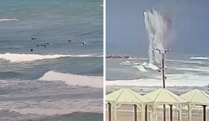 Two missiles hit the ocean as Israeli surfers were enjoying a swell in the Mediterranean. Photo: @wavehub_surf//Instagram