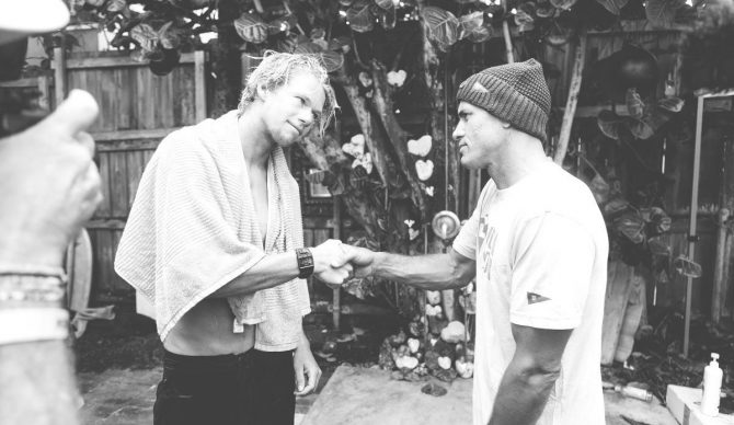 Could this be Kelly congratulating John John on 2020 Olympic Qualification come December? Or maybe even the other way around? Photo: Cestari / WSL