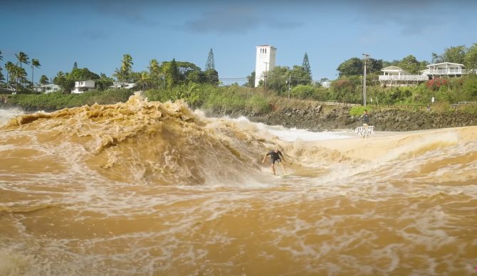 That sounds like chaos. But when Jamie O’Brien sees the first signs of those flash floods, he knows the Waimea River is about to go off. People showed up where the river empties into Waimea Bay in droves last week and were treated to a sight. “The biggest river ever. Guaranteed,” J.O.B. declared before seeing it all for himself.