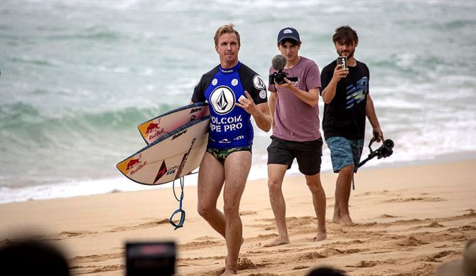 I wouldn’t hold my breath for speedos to ever become the status quo in lineups around the world but who better than Jamie O’Brien to attempt making that fashion statement? The guy’s surfed in speedos plenty but I’m pretty sure this is the first time he’s done so in a WSL heat. O’Brien donned some camo huggers at the Volcom Pipe Pro for his Round 3 heat against Josh Burke, Sheldon Paishon, and Dwight Pastrana, and you’re kidding yourself if you couldn’t at least muster a smirk watching the WSL’s oh-so-serious broadcast while J.O.B. collected a 2.87 heat total and took the piss out of it all.