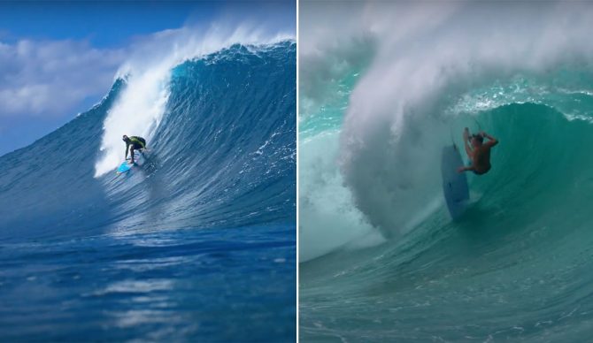 Firing Pipeline (he went straight) and thumping Waimea, two of Jamie’s favorite things. Photos: YouTube//Screenshot