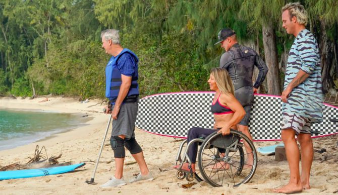Feige, who grew up immersed in board sports, suffered a snowboard accident when she was 18-years-old that left her with partial paralysis from the waist down. Despite her injury, she kept up with her passion for extreme sports, learning adaptive skiing, becoming an adaptive ski instructor, and then returning to the ocean with adaptive surfing. Feige went on to become a five-time para surfing world champion in her division, is a physiotherapist, and holds an ISA adaptive surf instructor certification. O’Brien and Elias couldn’t have found a more qualified person for the job.