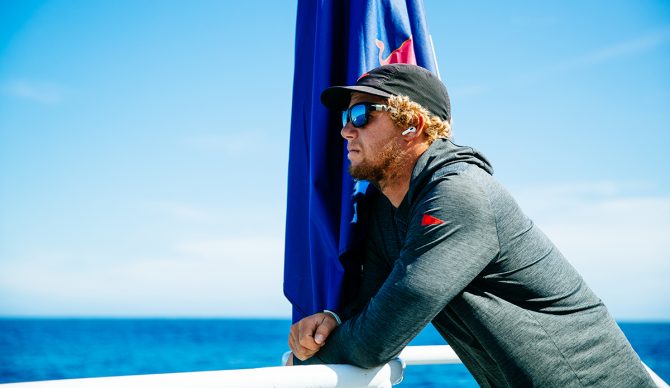 I think for me, sailing and surfing, and going to these places and the curiosity of seeing what’s around the corner is deeply ingrained in me. For whatever reason, it’s something that’s equal to the competitive side. For me, the competing has always been about surfing. Surfing is it for me, regardless of whether I’m surfing in a jersey or not. Being in a jersey is just a different way of doing it. I think it’s a fundamental side of the jersey thing to put yourself into these positions, these high pressure situations, and to try and be able to let go and just surf. But on the flip side of it, going sailing and the challenge of going from Hawaii to Fiji like we did last year, and going under your own power. For me, I just really love the idea of that. When I do get to do that, it just fills me up in a whole different way than competing does. I always loved that part of the ocean.