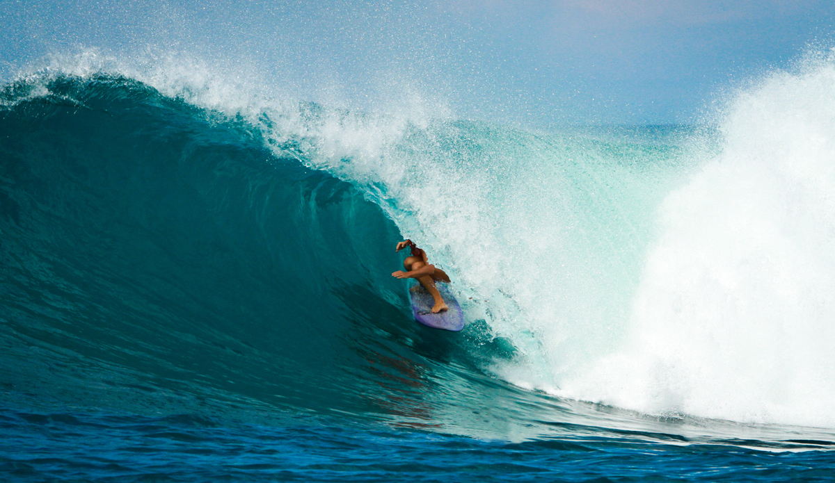 I became aware that my conscious mind was coaching my body through the barrels. My first big backside tube of the trip, I clearly remember my mind saying as the lip folded over, “Holiness. Is this really what it’s like to get tubed in Indo?! This is too surreal. It’s way heavier than I thought it would be.” I told myself, “Hold on, you’re going to make it. You’ve got this. This is amazing!”