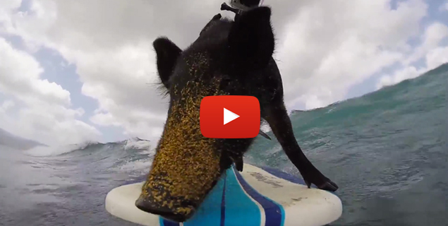 One day, he fell into the swimming pool and started swimming. Kai took Kama surfing with him once he found out he was already an avid swimmer. They caught their first wave together at Baby Makapu’u. Kama favors 3-4 foot waves and is known as the mascot of Sandy Beach. He occasionally wears GoPros for collars too. But only when he’s hanging hooves at his favorite beachbreak.
