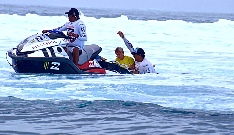 CS: The Hawai’ian meaning of your name is the path or the road. In a very real sense, this could have been, quite literally, The End of the Road, had the incident at Teahupo’o played out differently. Do you feel as though you were being watched out for during the tribute heat for Andy that day? Did you feel that Andy was present with you that trip? It seems to me that this was Andy’s swell… a gift from him for you all during the contest.